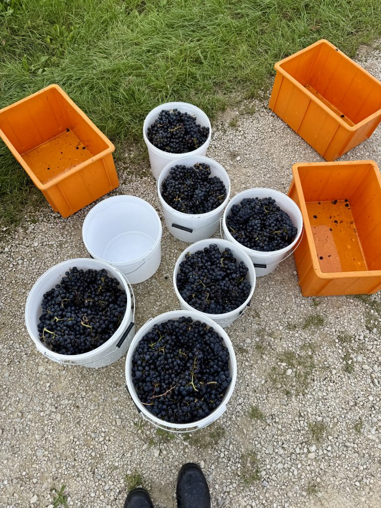 After a long weekend of harvest with some now friends in Rheinhessen in Germany, I drove to a vineyard in beautiful Aargau on a Monday morning and we harvested a plot of Pinot. It was perfectly ripe but many bug bites. The picking took us forever, and again, everyone else in the harvest crew was faster than me. I set some boxes aside and I filled those into my tiny buckets, and loaded the car. I was nervous.